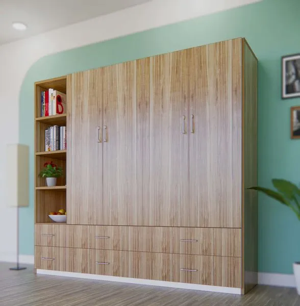 Tủ QA205 – 4 cánh mở, 2 hàng ngăn kéo dưới,ô hở trái màu vân xoan